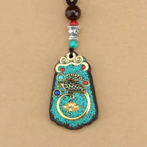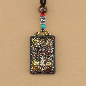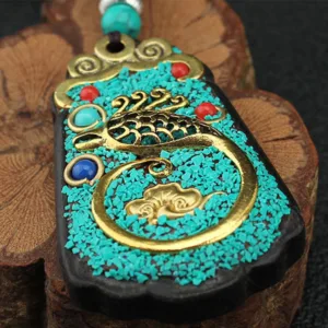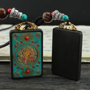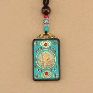 The Thangka on the necklace depicts the Five Gods of Wealth. which are as follows:
