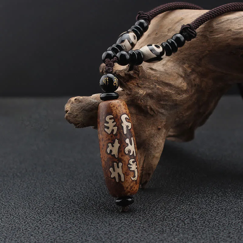 - Material: Dzi Bead. Three-eyed Dzi Bead. Agate. Rope