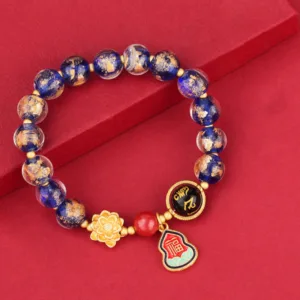 The Mythstone Tibet Om Mani Padme Hum Fu Character Gourd Charm Lotus Liuli Glass Bead Luck Bracelet is a beautifully crafted accessory with traditional Tibetan design elements. It features gourd and lotus charms. along with Liuli glass beads. making it a unique and meaningful piece of jewelry for those seeking luck and spirituality.