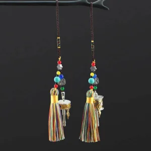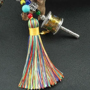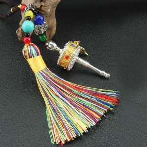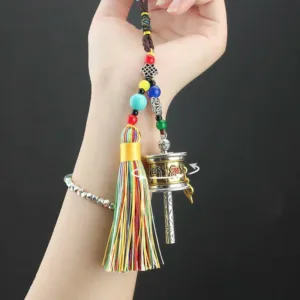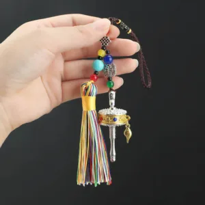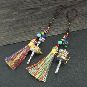Infuse your surroundings with love. wisdom. and peace through the Mythstone Tibet Om Mani Padme Hum Prayer Wheel Tassel Bag Car Hanging Decoration. Featuring the powerful Six True Words mantra. this hanging decoration resonates with the universe. offering focus and creative energy. Symbolizing purity. compassion. and wisdom. it brings tranquility and joy to your journey.