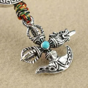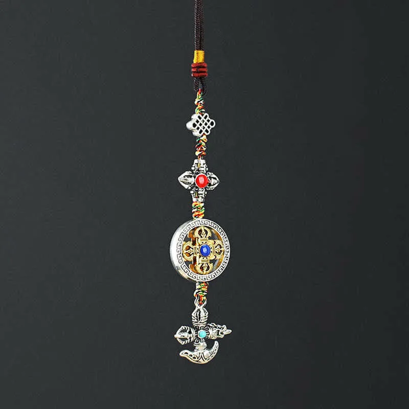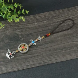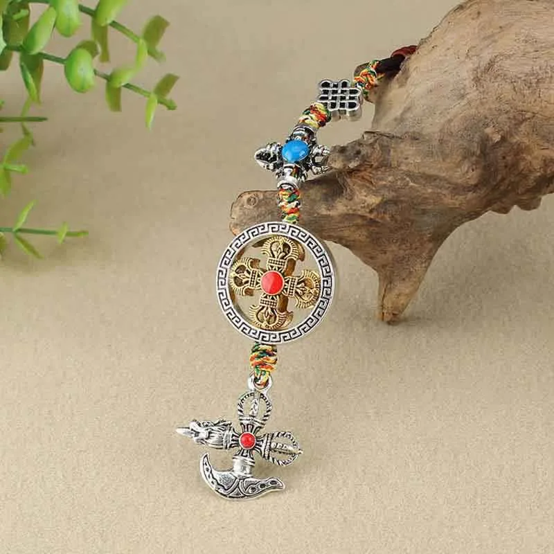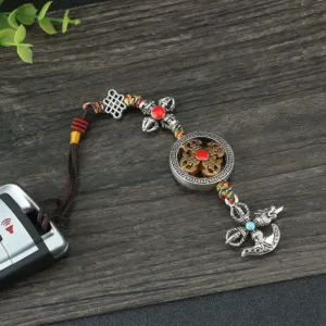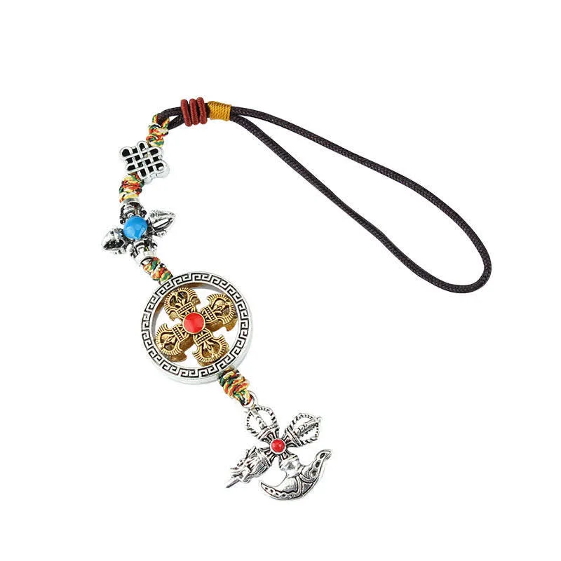 Infuse your travels with spiritual power using our Tibet Vajra Spiritual Power Car Hanging. This five-pronged ritual object. rich in symbolism. represents enlightenment. strength. and indestructibility. Originating from Buddhist ceremonies. the vajra blends diamond-like indestructibility with the force of a thunderbolt. signifying both firmness of spirit and irresistible power. Let it remind you of endless creativity and skillful action as you embark on your path.