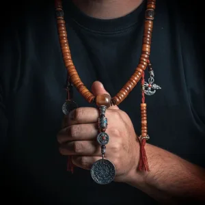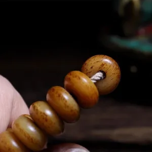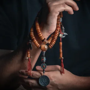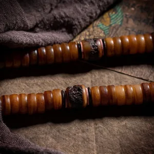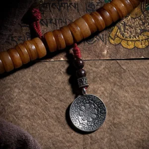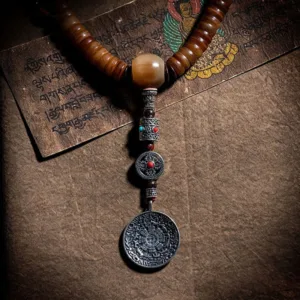 - Material: Yak Bone. Dzi Bead. Agate. Tibetan Silver Pagoda. Sandalwood. Coconut Shell. Tibetan Silver Prayer Wheels. Tibetan Silver Dharma Wheel. Tibetan Silver Nine Palaces Eight Diagrams. Brass. Rope. Elastic Rope. Non-Elastic Cotton Rope