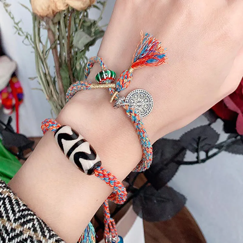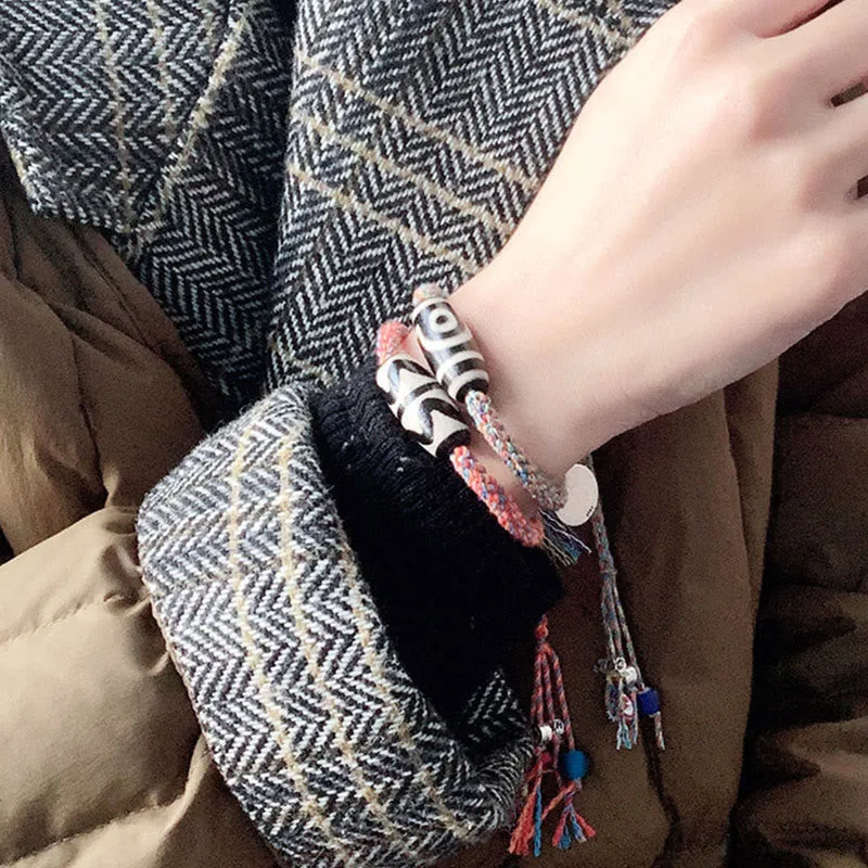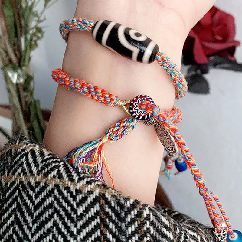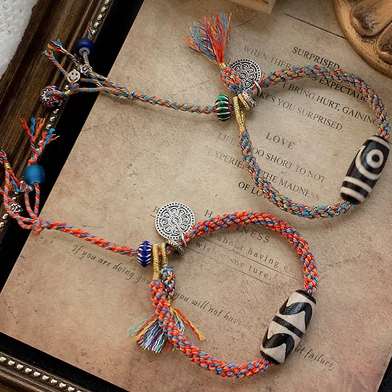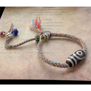 Dzi bead (Tib. ; pronounced “zee”; alternative spelling: gzi) is a type of stone bead of uncertain origin worn as part of a necklace and sometimes as a bracelet. Dzi beads are precious jewelry from Tibetan culture which is generally prized as protective amulets.these beads are believed to attract local protectors. dharmapalas or deities or maybe beneficial ghosts. ancestors or even bodhisattvas. Because of this. dzi beads are always treated with respect in Tibetan culture. Nine-Eye Dzi Bead is the symbol of The Nine Planets. It includes the activity of the Universe and the wisdom of the humanity. Nine-eyed beads is the most popular of all Dzis. brings all kinds of luck and blessings; protection. good health. purify negative energy expand intelligence and wisdom.It helps the investors with the successful development of new ideas in rolling in wealth.