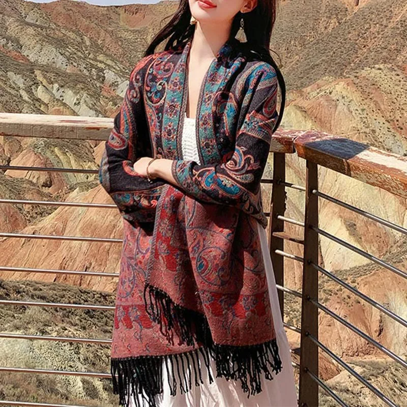 - Multiple Uses: This high-quality designed fashionable Tibetan scarf can be used as a travel blanket. evening shawl. or throw blanket when snuggling on the sofa. it can be worn with coats. sweaters. pullover. shirts. and more.