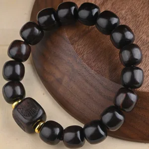 Tibetan Ebony Wood bracelet features barrel beads. symbolizing luck and balance. This lucky and treasure bracelet combines the rich. dark tones of ebony wood with traditional Tibetan craftsmanship. creating a meaningful accessory. The design reflects harmony and prosperity. making it perfect for those seeking to embrace positive energy and cultural heritage in their lives.