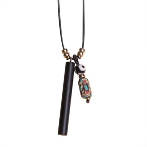 - Material: Ebony Wood. Dzi Bead. Alloy. Wax String