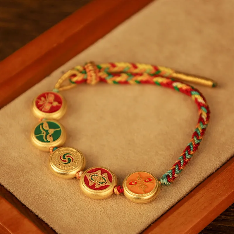Tibetan Five God Of Wealth Luck bracelet weaves vibrant colors into a rope braided design. symbolizing prosperity and good fortune. Each braided strand represents one of the Five Gods of Wealth. believed to bring blessings and abundance to the wearer. Crafted with meticulous attention to detail. this bracelet serves as a powerful talisman. attracting luck and positive energies into your life.