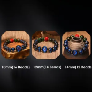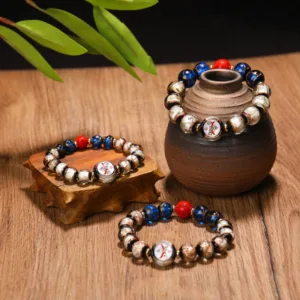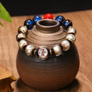 This bracelet blends master craftsmanship with meaningful design. featuring Mythstone and liuli glass beads. It incorporates the Tibetan Five God of Wealth Thangka and Chinese Zodiac symbols. offering protection and good fortune. Ideal for those seeking spiritual grounding and zodiac-aligned positivity in their daily life.
