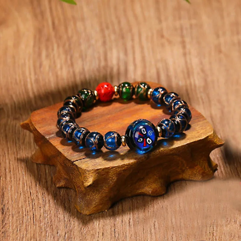 Embrace protection. prosperity. and balance with our bracelet featuring Tibetan Five God of Wealth Thangka and zodiac-aligned liuli beads for luck and success.