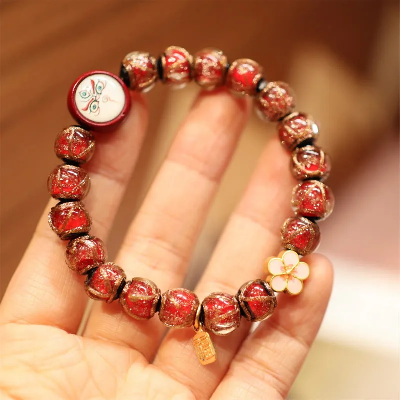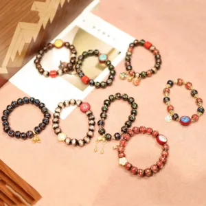 Embrace abundance with the exquisite Mythstone Tibetan Gold Swallowing Beast Family Thangka Fortune Bead Bracelet. This intricately designed bracelet features the revered Five Gods of Wealth. radiating prosperity and good fortune. Elevate your style while inviting positive energies into your life.
