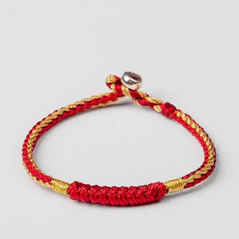 In lineages of Tibetan Vajrayana Buddhism. tying a cord or string around the wrist is common during ceremonies. Traditionally. the Lama blesses the string and then ties a knot and imbues it with a mantra. Similar to other traditions. it’s said that these red cords bring luck and offer protection.