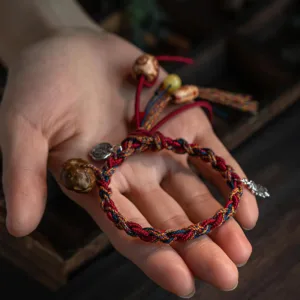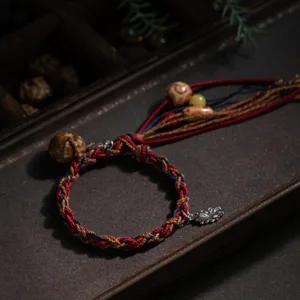 In lineages of Tibetan Vajrayana Buddhism. tying a cord or string around the wrist is common during ceremonies. Traditionally. the Lama blesses the string and then ties a knot and imbues it with a mantra. Similar to other traditions. it’s said that these red cords bring luck and offer protection.