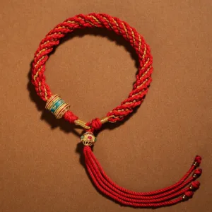 In lineages of Tibetan Vajrayana Buddhism. tying a cord or string around the wrist is common during ceremonies. Traditionally. the Lama blesses the string and then ties a knot and imbues it with a mantra. Similar to other traditions. it’s said that these red cords bring luck and offer protection. In ancient Chinese legend. the Red Thread of Fate is – invisible and ties all those whose lives will intertwine together. It is governed by the Chinese God of marriage. Yue Lao. as it’s primarily associated with the link between two people destined to be married. Throughout history and across philosophies. the red string has been worn for protection. faith. good luck. strength. and connection.
