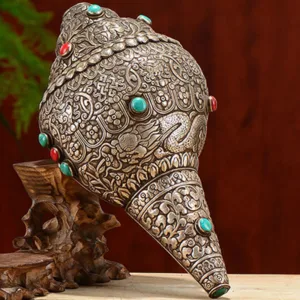 The shankha is one of the eight auspicious symbols of Buddhism. and represents the pervasive sound of Buddhism. It is an auspicious symbol that is believed to be a giver of fame. longevity. prosperity. and good luck while eradicating negativity and purifying the surrounding. The right-turning white conch shell (Tibetan: ??? Wylie: dung gyas ‘khyil). represents the elegant. deep. melodious. interpenetrating and pervasive sound of Buddhism. The sound of the shankha symbolises the sacred Om sound.