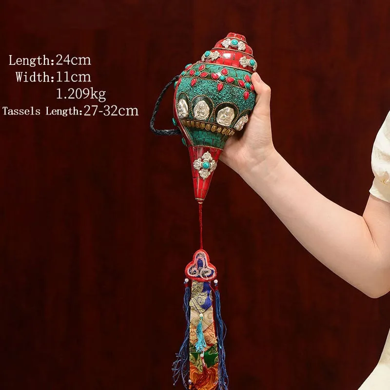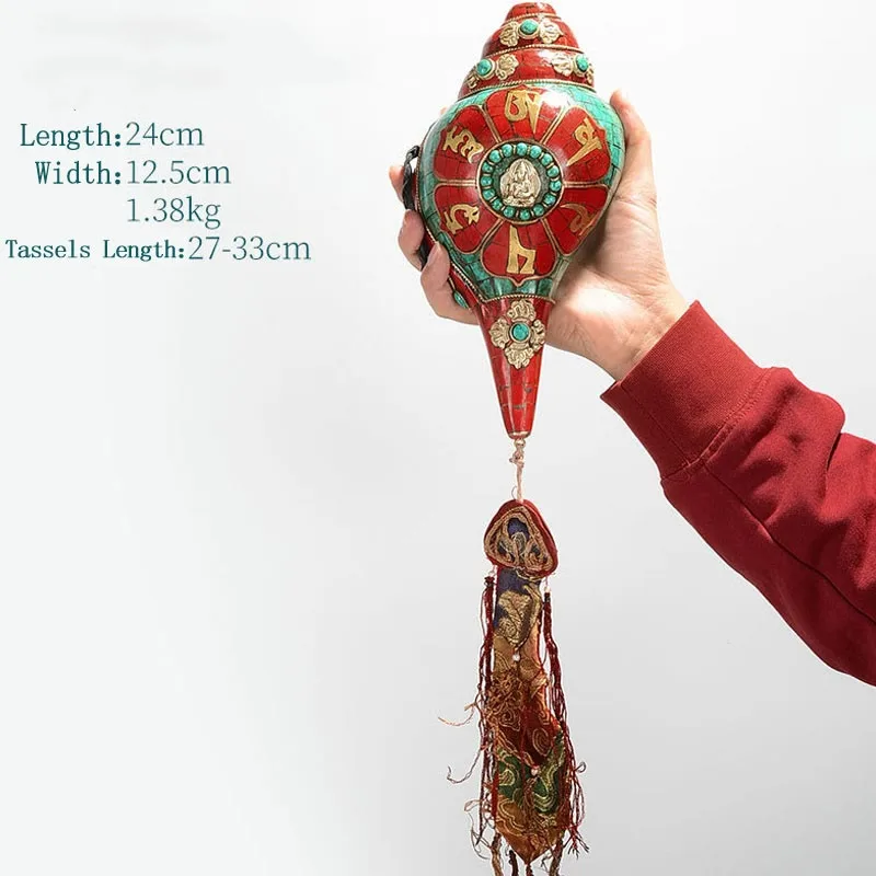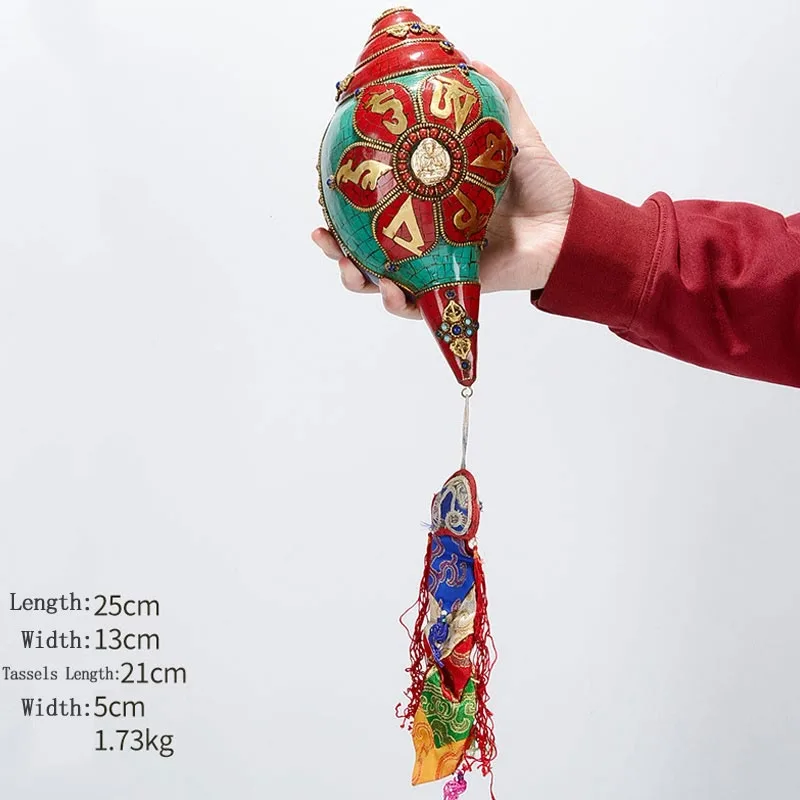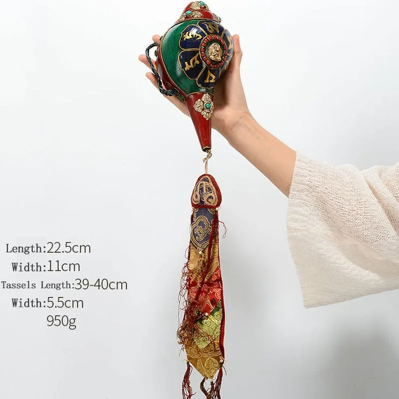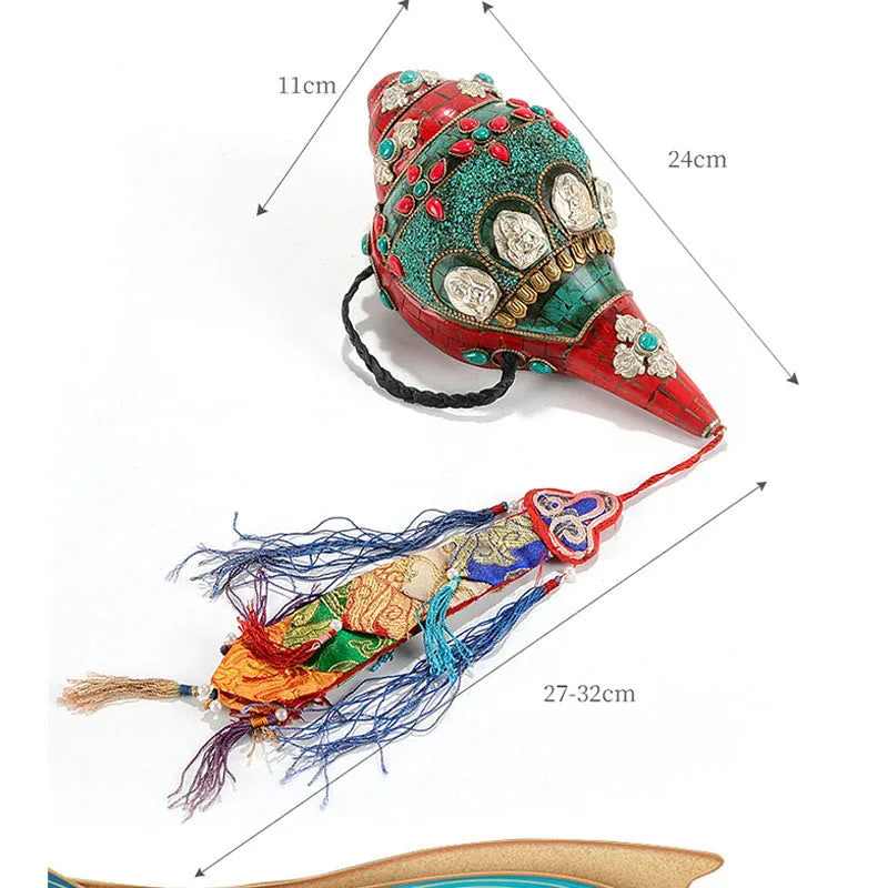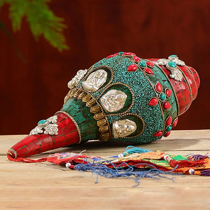 Mythstone Tibetan Handmade Shankha Om Mani Padme Hum Buddha Avalokitesvara Turquoise Conch Shell Positive Decoration