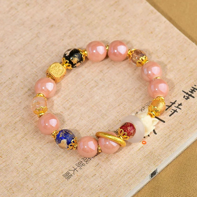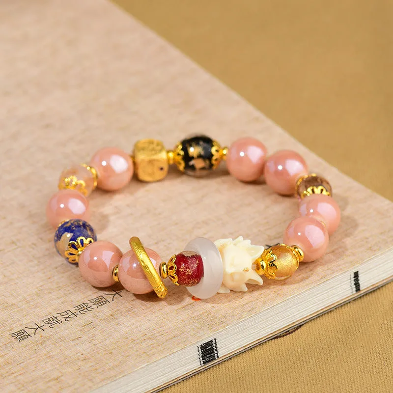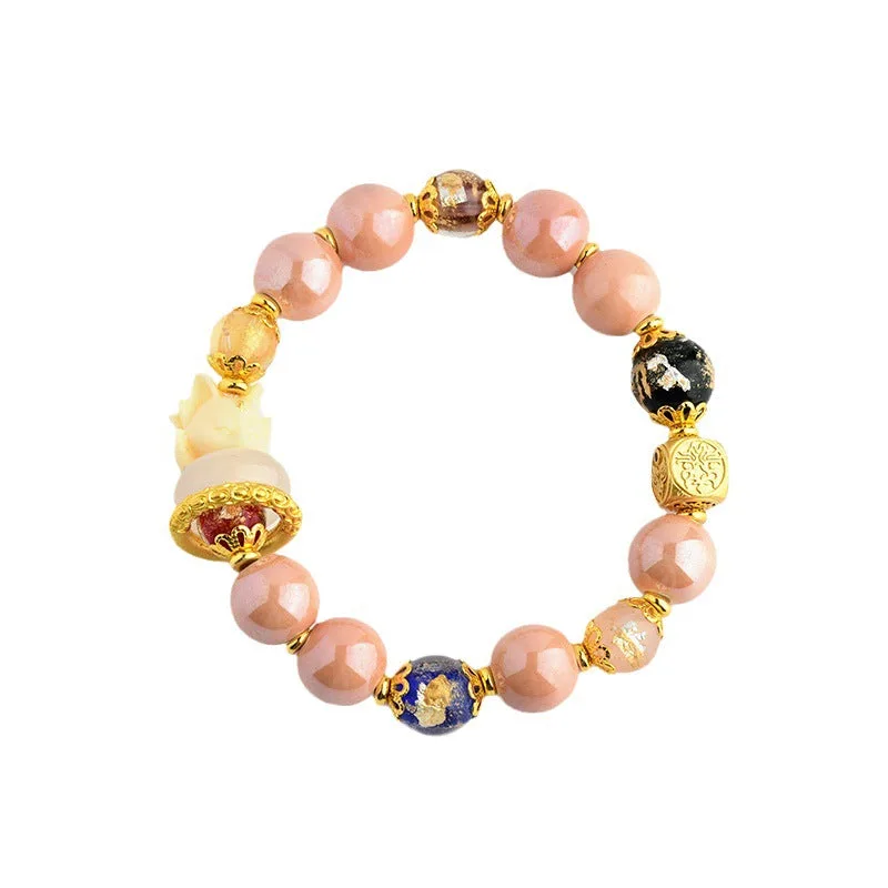 The incense ash glass bracelet has the effect of balancing the five elements of “gold. wood. water. fire. and earth”.