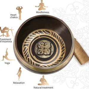 - RELAXING AND DEEP SOUNDS: Meditation bowl helps you to heal. defeat disease. lower pain levels while releasing positive energy. Healing processes are initiated through entraining our brainwaves to synchronize with the perfect resonance of the bowls. You can easily play peaceful and mesmerizing tones on this unique Tibetan singing bowl to create a type of energy medicine that reduces stress and promotes spiritual. mental. and physical healing.