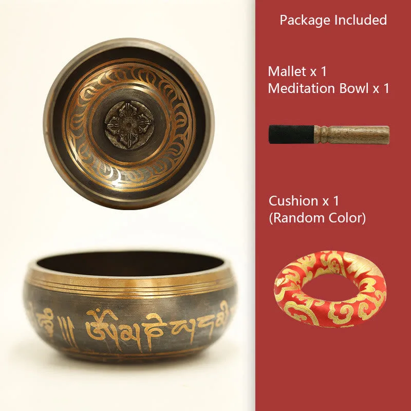 - The package includes a handmade meditation bowl x 1. Mallet x 1/a handmade meditation bowl x 1. Mallet x 1. Cushion x 1 (Random Color)