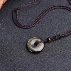 The Tibetan Obsidian Protection Necklace features a round ring shape and is made with high-quality Obsidian materials. including gold sheen Obsidian. rainbow Obsidian. and black Obsidian. This necklace is designed to offer powerful protection against negative energies and promote grounding and balance. With its unique and eye-catching design. it’s perfect for anyone looking for a stylish and meaningful accessory.