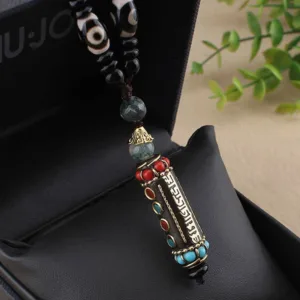 - Material: Wenge Wood. Agate. Dzi Bead. Coconut Shell. Copper. Turquoise