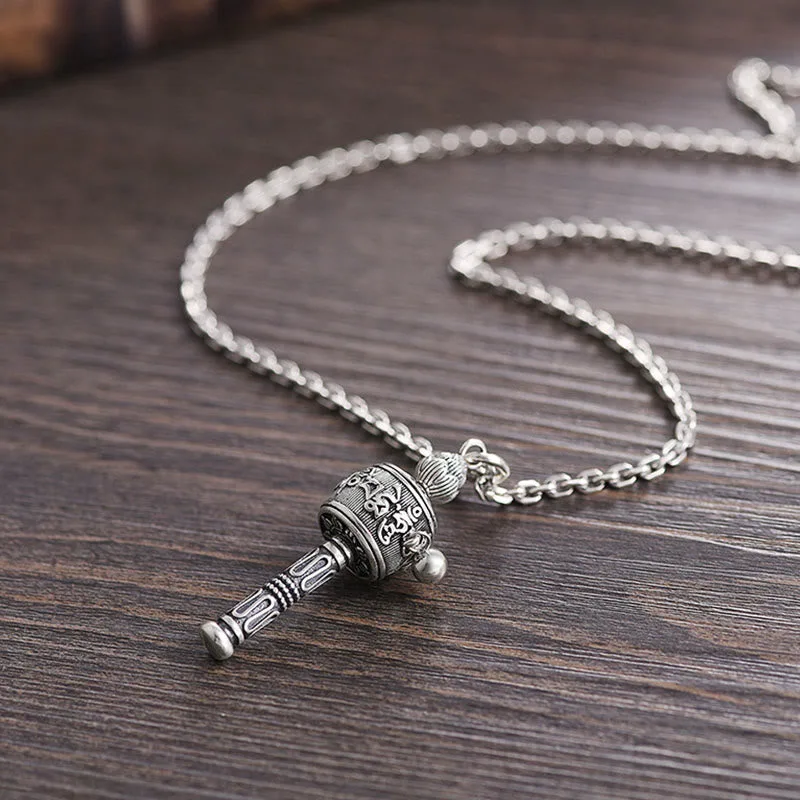 Mythstone Tibetan Om Mani Padme Hum Prayer Wheel Lotus Wisdom Rotatable Necklace Pendant