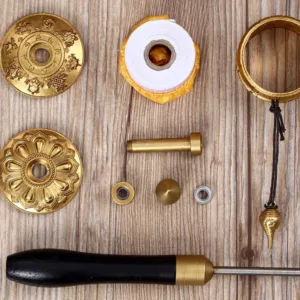 Tap into spiritual energy with the Mythstone Tibetan Prayer Wheel Six True Words Copper Meditation Decoration. This intricately designed prayer wheel features the sacred mantra ‘Om Mani Padme Hum’ and is crafted from copper for balance. healing. and luck. Embrace the divine with this meaningful decoration.