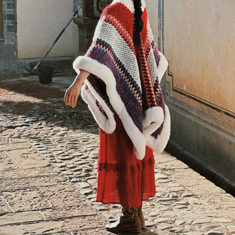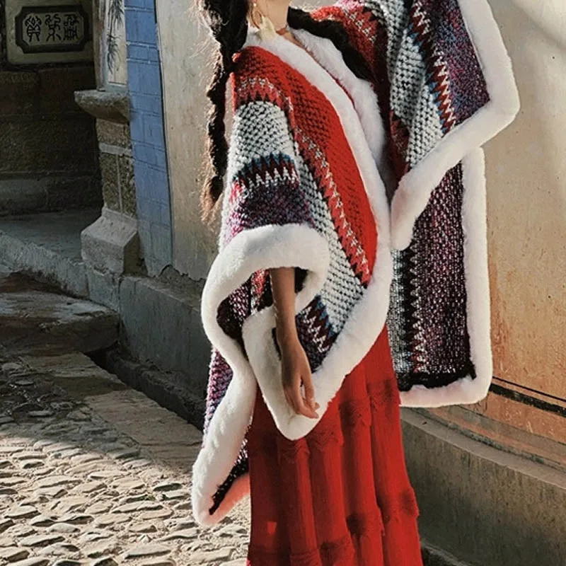 Experience the vibrancy and warmth of our Mythstone Tibetan Red Colorful Shawl. This large. cozy travel scarf doubles as a wrap and cloak for winter adventures. The rich red hue combined with colorful accents evokes a sense of culture and style. Stay toasty and chic as you travel. embracing the comfort and versatility this shawl offers. Make a bold statement with this essential winter accessory.