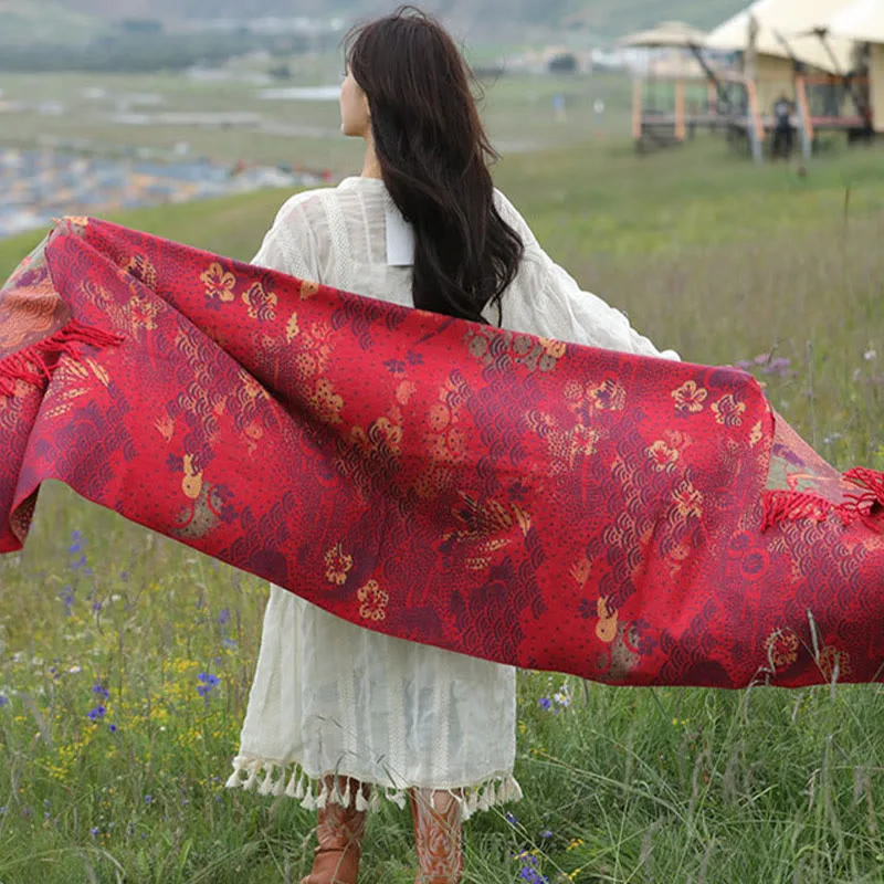 - Multiple Uses: This high-quality designed fashionable Tibetan scarf can be used as a travel blanket. evening shawl. or throw blanket when snuggling on the sofa. it can be worn with coats. sweaters. pullover. shirts. and more.