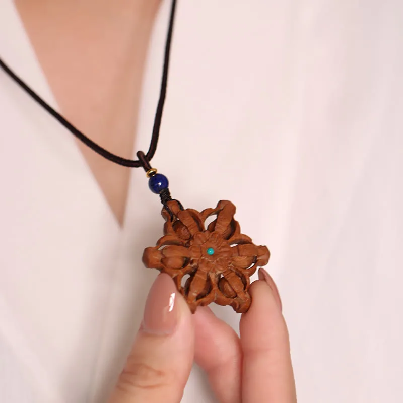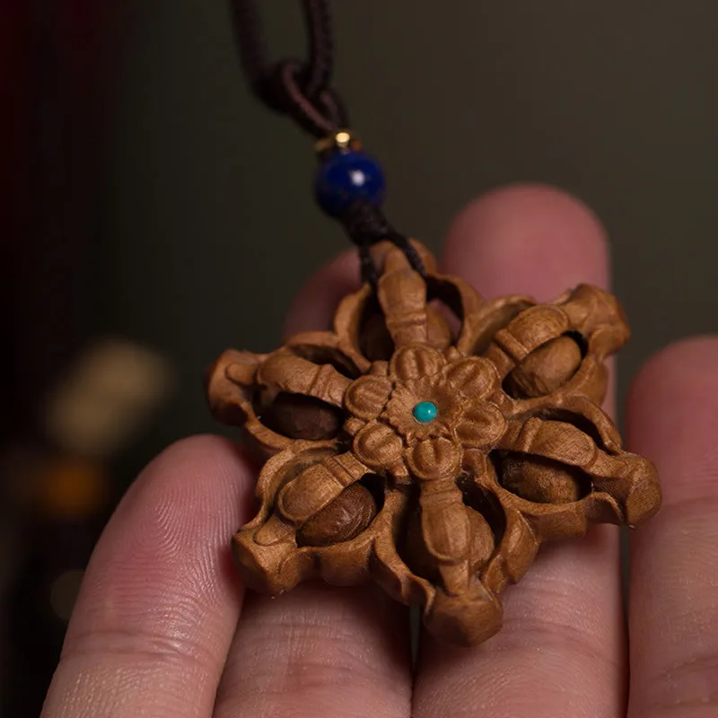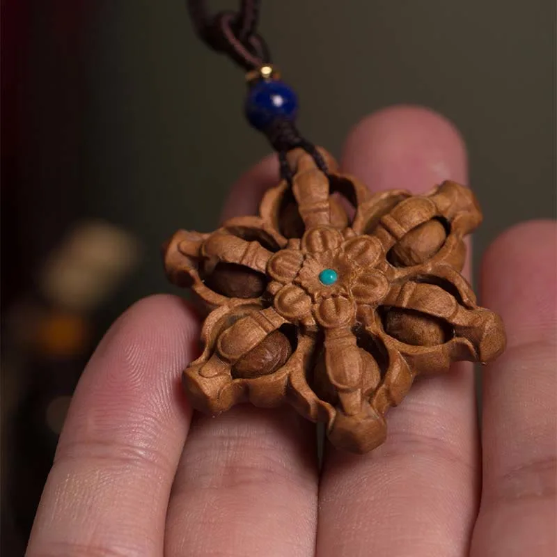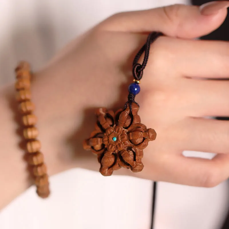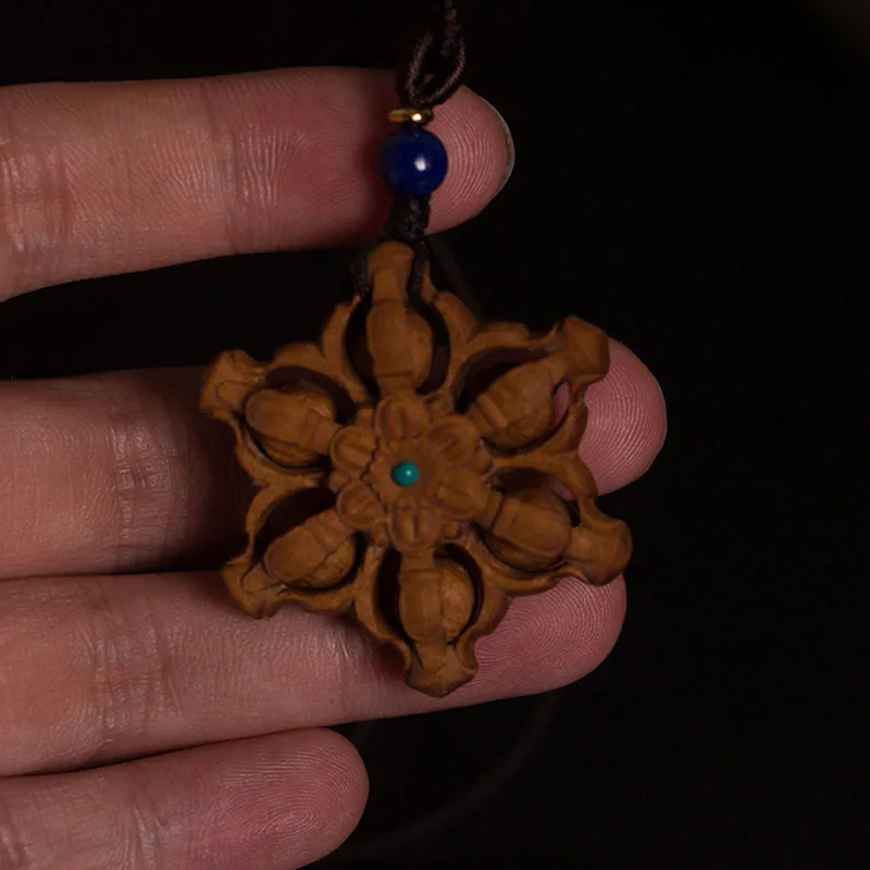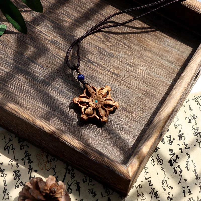 Mythstone Tibetan Sandalwood Dorje Vajra Keep Away Evil Spirits Necklace Pendant