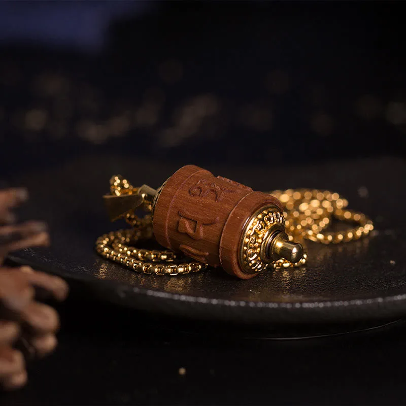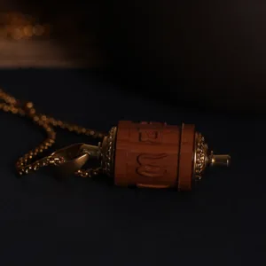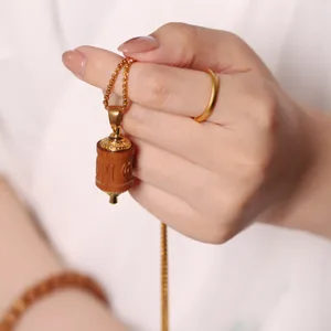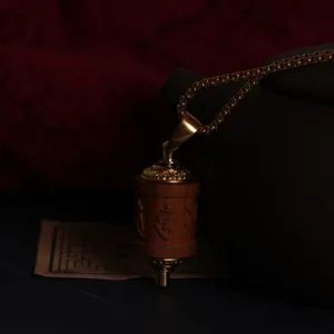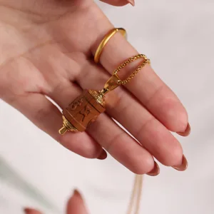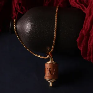 Elevate your spiritual journey with our Sandalwood Prayer Wheel Om Mani Padme Hum Necklace Pendant. featuring Mythstone. This pendant combines the spiritual significance of the prayer wheel with the calming properties of sandalwood. inviting protection and warding off negative energies. Wear this pendant to enhance your spiritual practice and shield yourself from harmful influences.