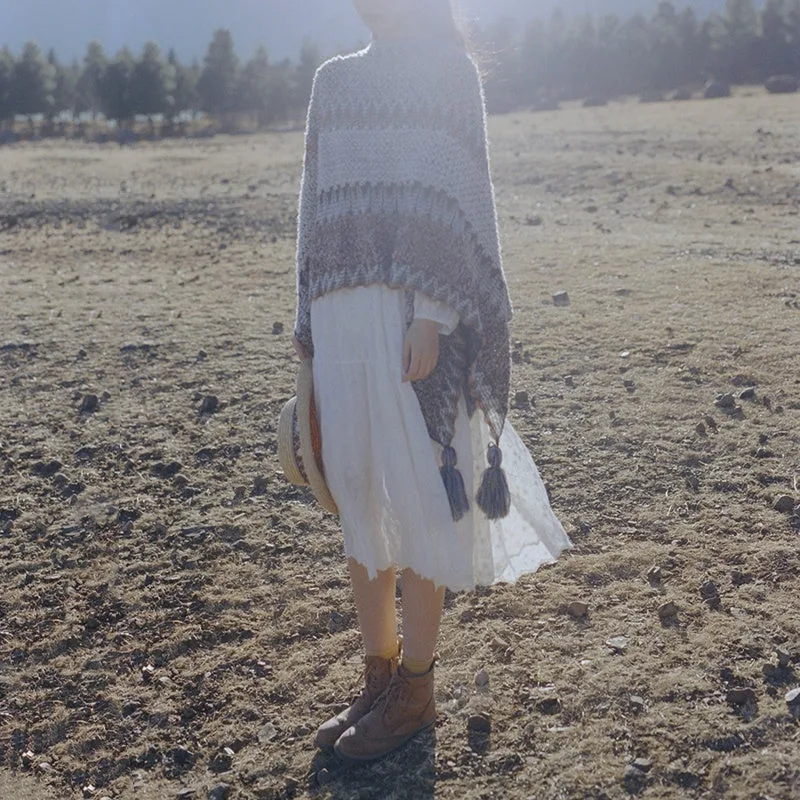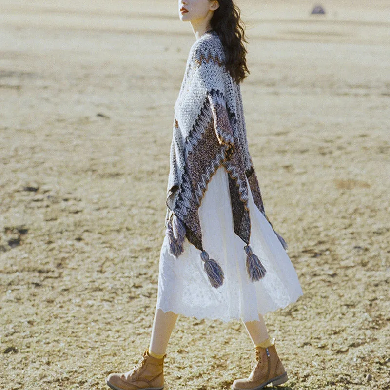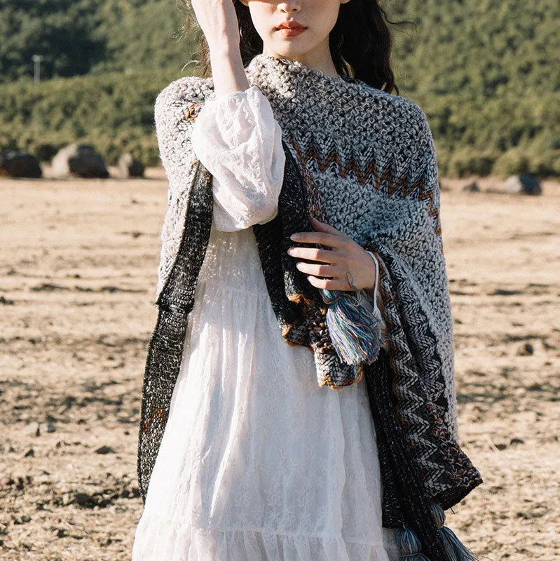 Embrace the winter season with the Mythstone Tibetan Shawl in Gray and Brown Striped Knitted Tassels. This scarf wrap is an ideal accessory for those who appreciate understated elegance. The subtle hues of gray and brown are seamlessly intertwined. creating a look that is both sophisticated and earthy. Perfect for travel or everyday wear. it offers warmth and comfort without compromising style. This shawl is a testament to tranquility and simplicity. making it an essential addition to any mindful wardrobe.