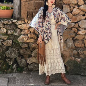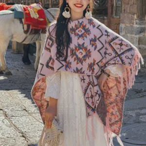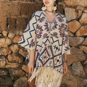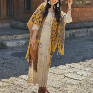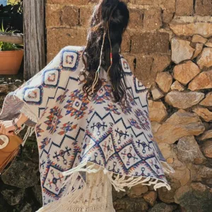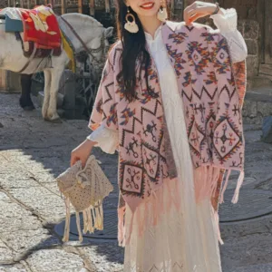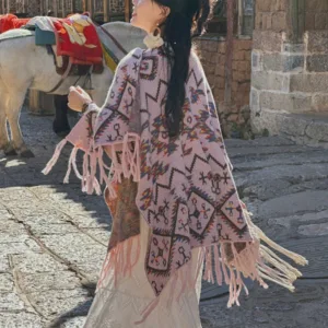 The Mythstone Tibetan Shawl Striped Wrap merges comfort with spiritual symbolism. Ideal for winter travels. this cozy. knitted scarf features a striped geometry pattern. representing stability and clarity. It’s a perfect accessory for those seeking both physical warmth and a touch of spiritual insight during their journey.