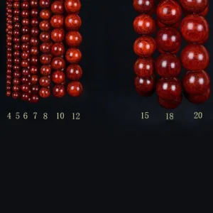 Small leaf red sandalwood has the effects of avoiding evil and protecting peace. eliminating disasters and relieving evil. eliminating evil and gathering wealth. changing Feng Shui. providing the gods of Buddha’s spiritual cultivation. and curing diseases and relieving evil. In the “Compendium of Materia Medica”. it is described that Pterocarpus striata has calming heart. soothing nerves. relaxing muscles and blood. anti-inflammatory and pain-relieving effects. Wearing small leaf red sandalwood jewelry can have incredible magical powers and inductions. such as enhancing immunity. preventing aging. stabilizing heart rate. improving insomnia and other medicinal effects.