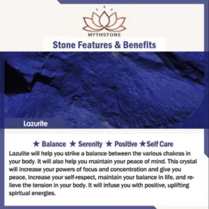 Lazulite will help you strike a balance between the various chakras in your body. It will also help you maintain your peace of mind. This crystal will increase your powers of focus and concentration and give you peace. increase your self-respect. maintain your balance in life. and relieve the tension in your body. It will infuse you with positive. uplifting spiritual energies.
