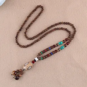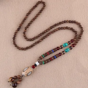 - Material: Wenge Wood. Bodhi Seed. Turquoise. Red Agate. Green Agate. Agate. Resin Bead. Amber. Natural Coconut Shell