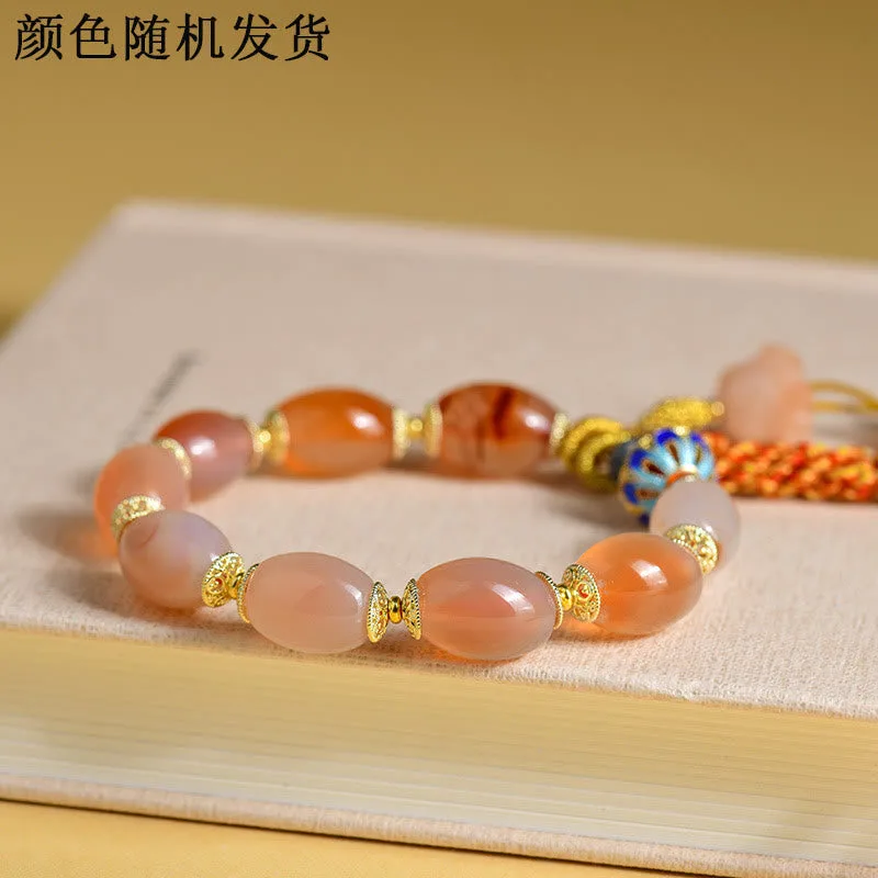 Tibetan White Jade Bracelet features olive-shaped beads of candy agate and jade. symbolizing strength. confidence. and protection. This unique bracelet promotes balance and spiritual resilience. making it ideal for individuals seeking inner stability and growth. The combination of jade’s protective qualities and agate’s grounding energy makes this piece a powerful accessory for enhancing personal strength and confidence.