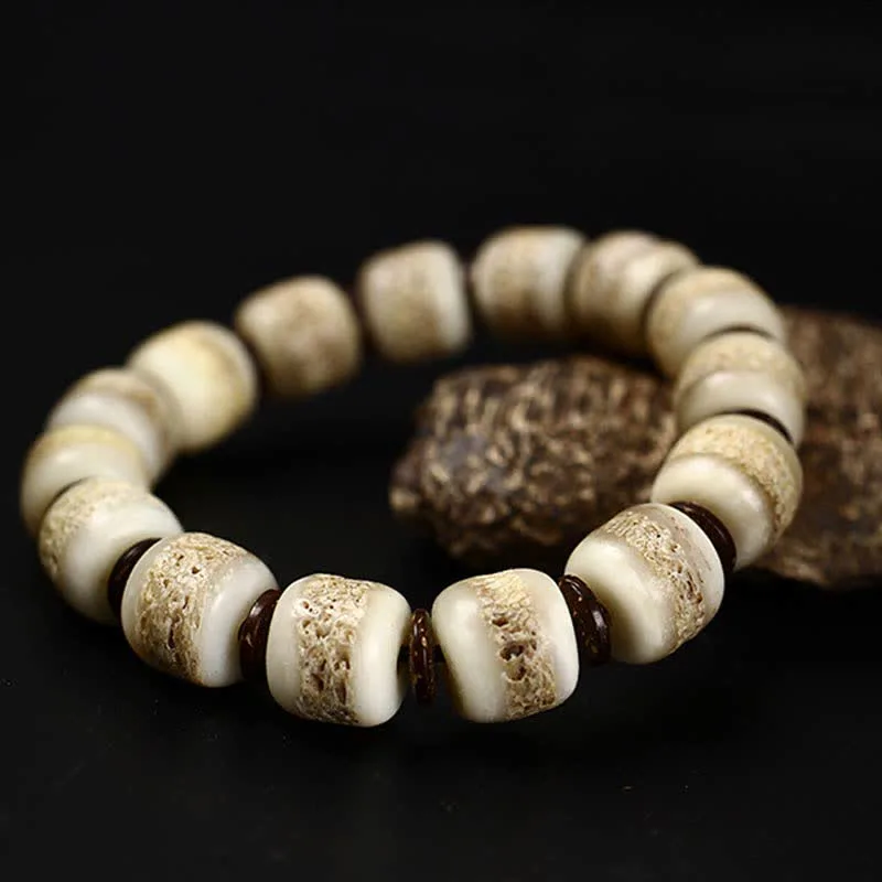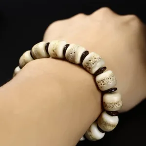 Yak is the best friend of Tibetans. It is praised as a beautiful sacred animal by Tibetans. It is uniquely carved with pure natural materials such as yak bones and yak horns. The yak bone bracelet is worn to help the body balance its essential energy and warding off evil spirits. Wear the Bracelet and let its healing properties radiate through your body. Bone is believed to give strength. it is said to increase Prana. a Sanskrit word which means “LIfe Force”.