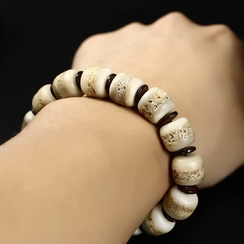 Experience the power of the Mythstone Tibetan Yak Bone Strength Balance Bracelet. Handcrafted with care using sacred yak bones. it promotes strength. balance. and protection from evil spirits. Embrace its natural energy and let it harmonize your spirit. Tap into the essence of life force and find inner strength with this unique piece.
