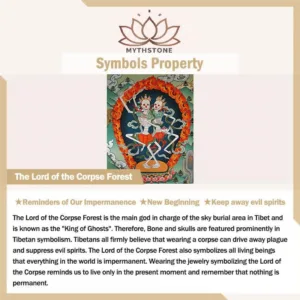 The Lord of the Corpse Forest is the main god in charge of the sky burial area in Tibet and is known as the “King of Ghosts”. Therefore. Bone and skulls are featured prominently in Tibetan symbolism. Tibetans all firmly believe that wearing a corpse can drive away plague and suppress evil spirits. The Lord of the Corpse Forest also symbolizes all living beings that everything in the world is impermanent. Wearing the jewelry symbolizing the Lord of the Corpse reminds us to live only in the present moment and remember that nothing is permanent.