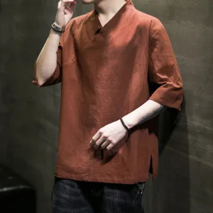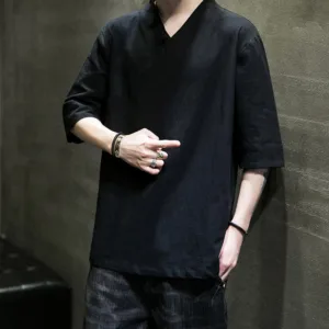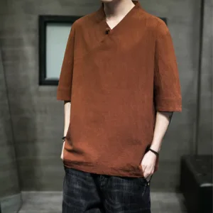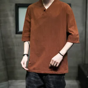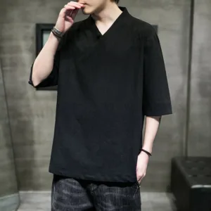 V-Neck Half Sleeve Cotton shirt offers a blend of comfort and simplicity with its soft cotton fabric and classic V-neck design. This shirt promotes a relaxed state of mind. providing ease and calm with every wear. Ideal for everyday use. it supports both physical comfort and mental tranquility through its minimalist design and natural material.
