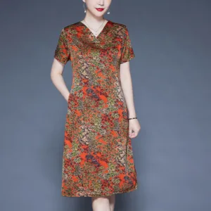 V-Neck Tree Leaves dress features a V-neck design. short sleeves. and a midi length with pockets. This dress combines comfort and elegance. showcasing a beautiful tree leaves pattern. The breathable fabric ensures all-day comfort. while the pockets add practical convenience. Ideal for various occasions. it’s a stylish and functional addition to any wardrobe.