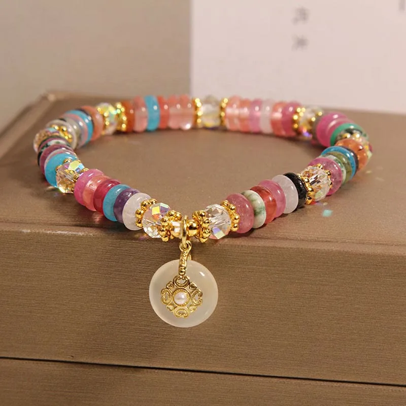 - Material: Strawberry Quartz. White Agate. White Crystal. Blue Crystal. Pink Crystal. Amethyst. Red Agate. Crystal. Agate. Jade. Alloy. Copper