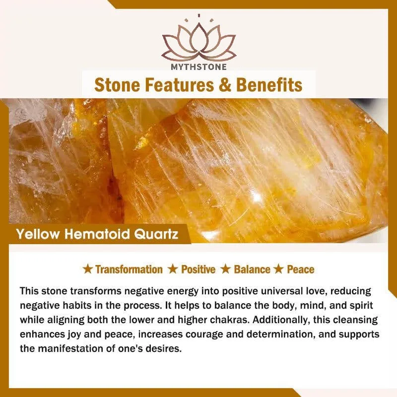 delight and enthusiasm. Raises self-esteem and self-confidence.Citrine promotes motivation. activates creativity and encourages self-expression.lt is believed to release negative traits.depression. fears and phobias.