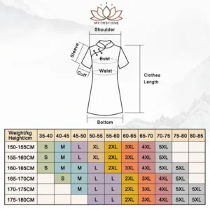 The Size Chart of Cheongsam Dress