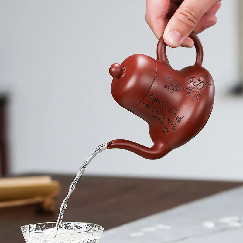 This teapot is made from purple clay. It follows an Exquisite semi-handmade creation process. It is handmade by Master Zhang Ji Li.