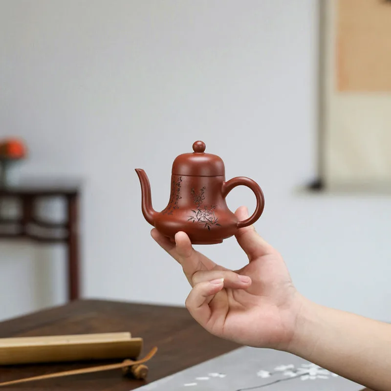 Mythstone Vintage Bamboo Peach Blossom Purple Clay Kung Fu Teapot
