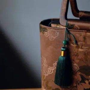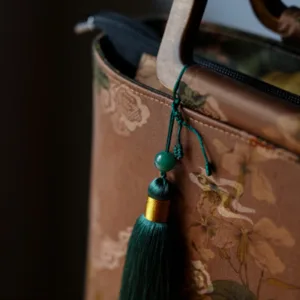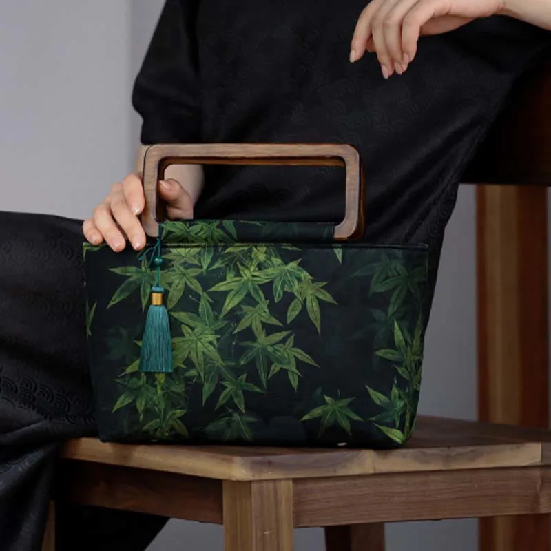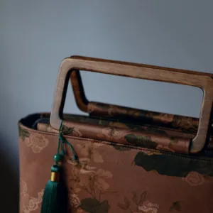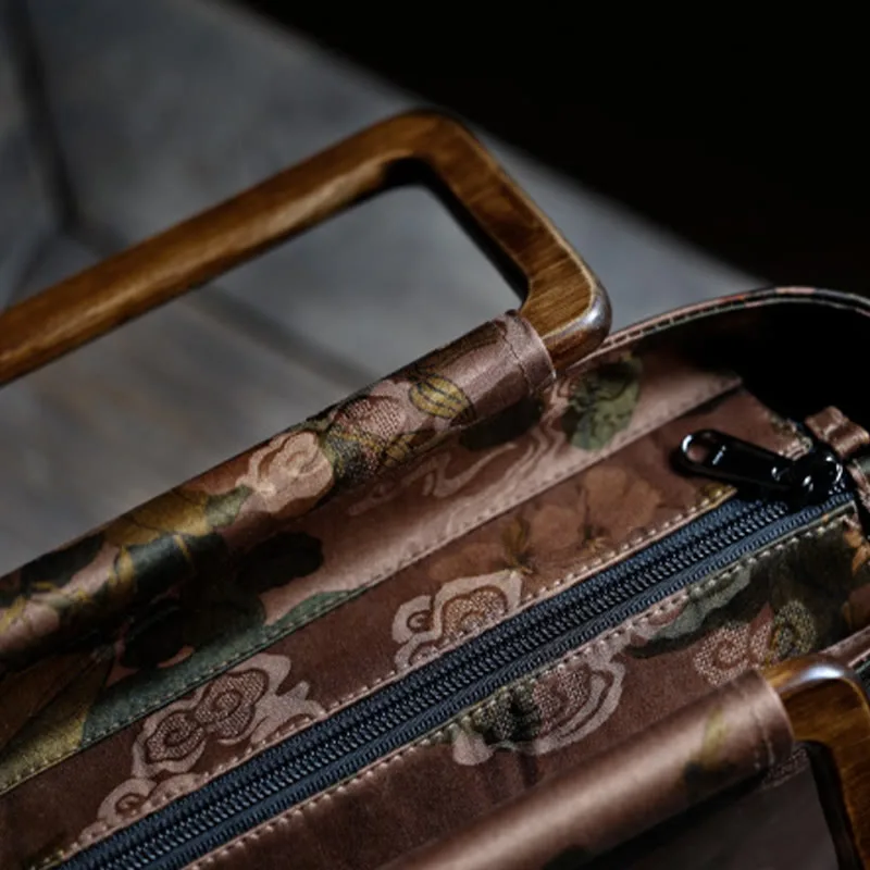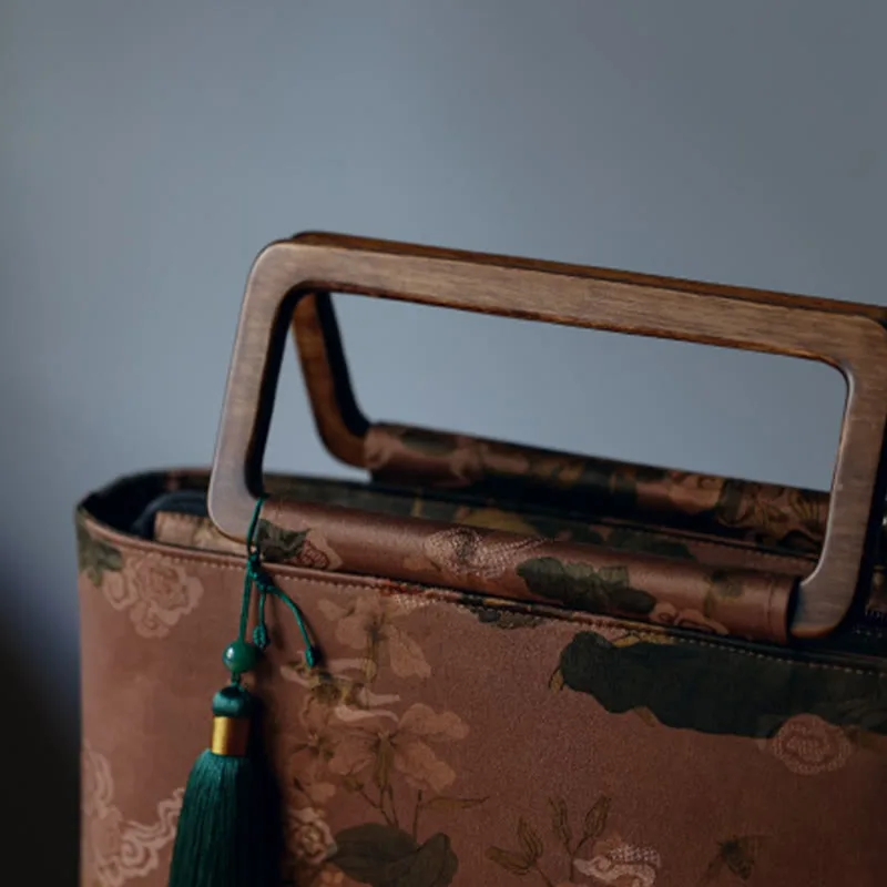 Vintage Brown Flowers Green Bamboo Leaves handbag features elegant floral and bamboo leaf designs with sturdy wood handles and a secure zipper closure. This stylish handbag combines classic beauty with modern functionality. perfect for daily use or special occasions. The natural elements and unique design add a touch of sophistication. enhancing your attire with charm and practicality.