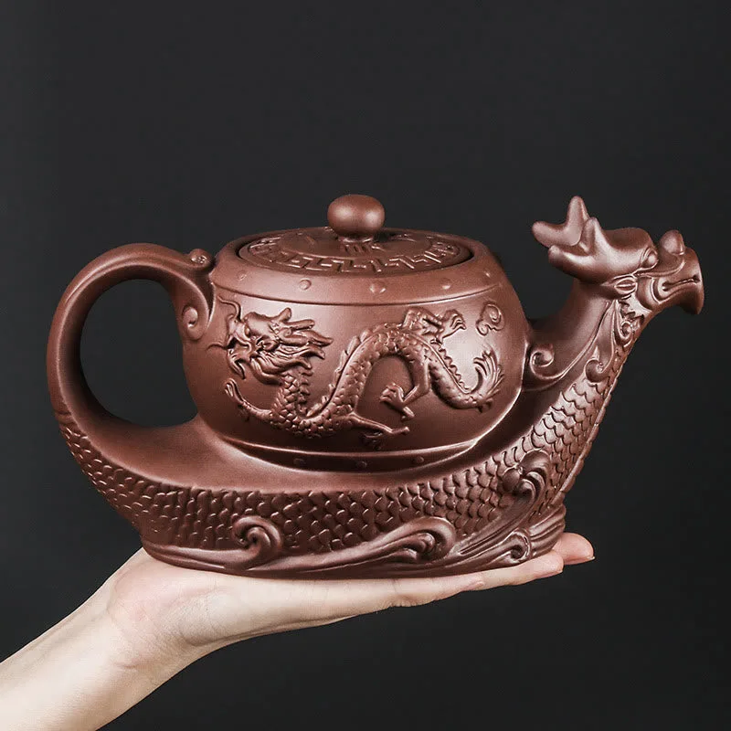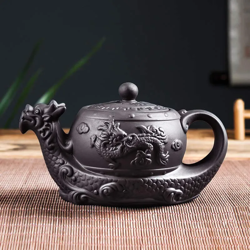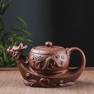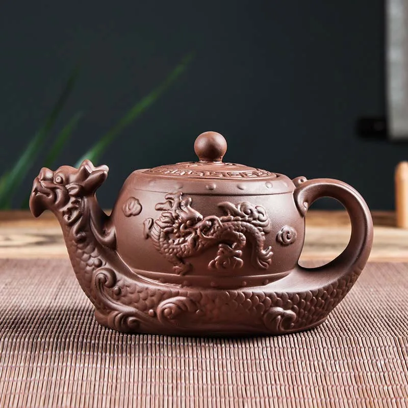 Embrace the allure of history with our Mythstone Vintage Dragon Teapot. Meticulously shaped from purple clay. its design showcases auspicious clouds. encapsulating both tradition and elegance. A must-have for connoisseurs and culture enthusiasts.