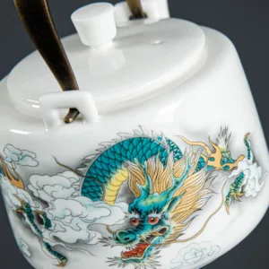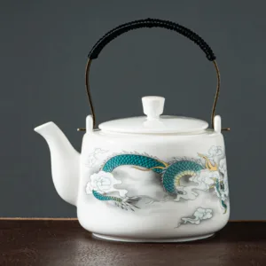 Vintage Dragon Mountain Fisherman Landscape White Porcelain Ceramic Kung Fu Teapot
