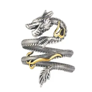 Vintage Dragon Protection Ring features a coiled dragon design. crafted from durable copper. The dragon spirals around the finger. symbolizing strength. protection. and wisdom. This intricately detailed ring represents the dragon’s powerful energy. making it perfect for those seeking protection and courage in their personal journey. A unique piece to inspire inner strength and spiritual growth.